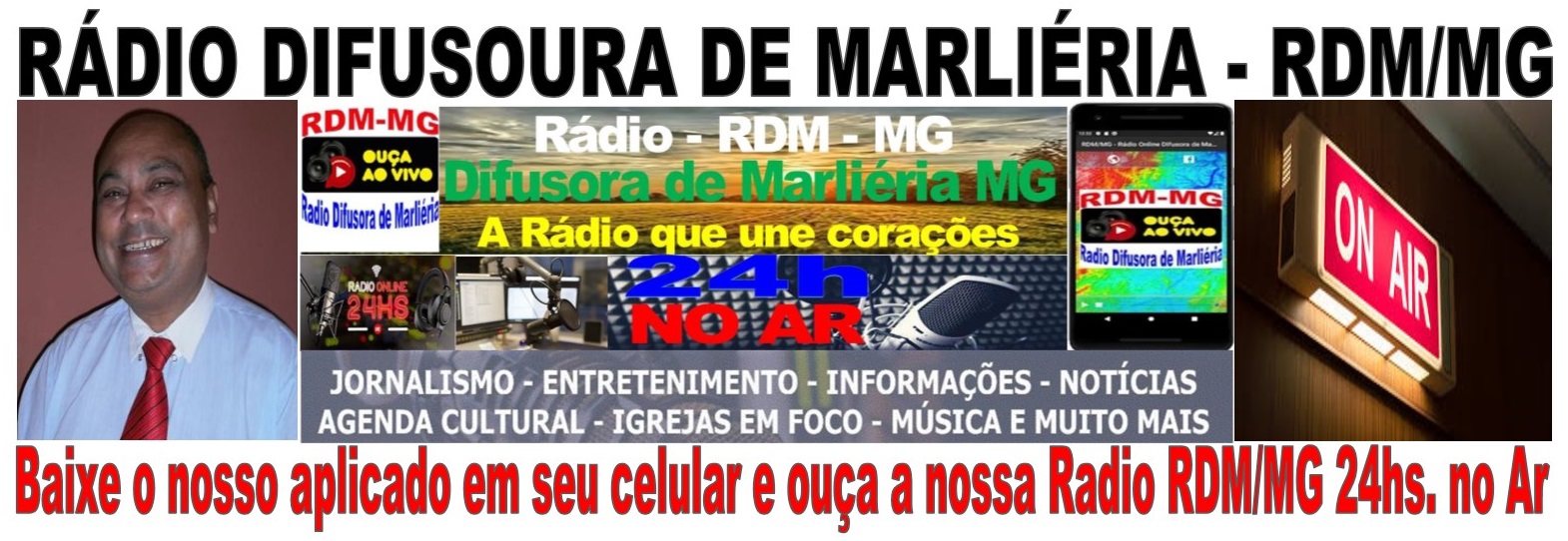 No PlayStores escreve apenas RDM/MG e baixe nosso aplicativo e ouça nossa Radio 24hs. no AR.